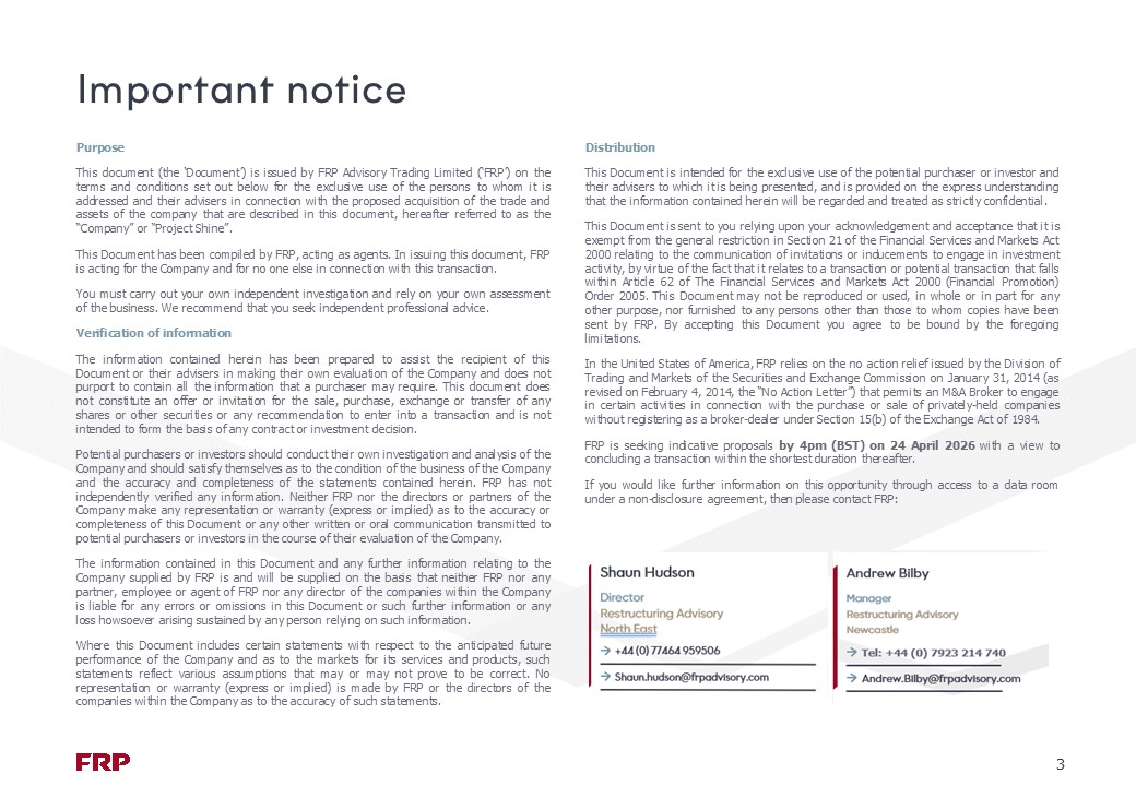 • Indicative proposals are requested with supporting proof of funds no later than 4 pm on Friday, 24th April 2026, with a view to completing a deal as quickly as possible thereafter.